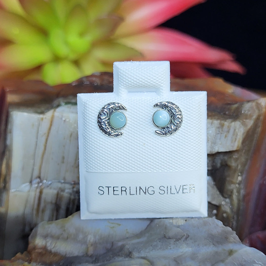 Sterling Silver 925 Larimar Crescent Moon stud earrings