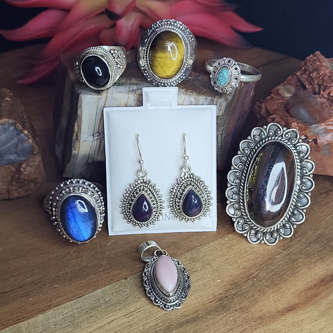 All sterling silver 925 items as described in live video, if you have any questions about stones please feel free to reach out we will always be happy to help.