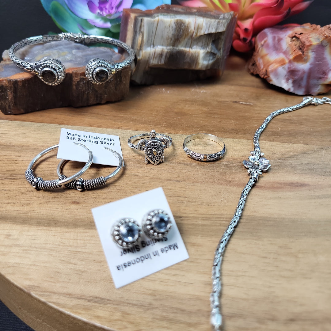 All sterling silver 925 items as described in live video, if you have any questions about stones please feel free to reach out we will always be happy to help.
