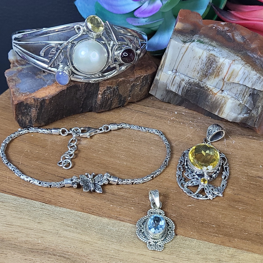 All sterling silver 925 items as described in live video, if you have any questions about stones please feel free to reach out we will always be happy to help.