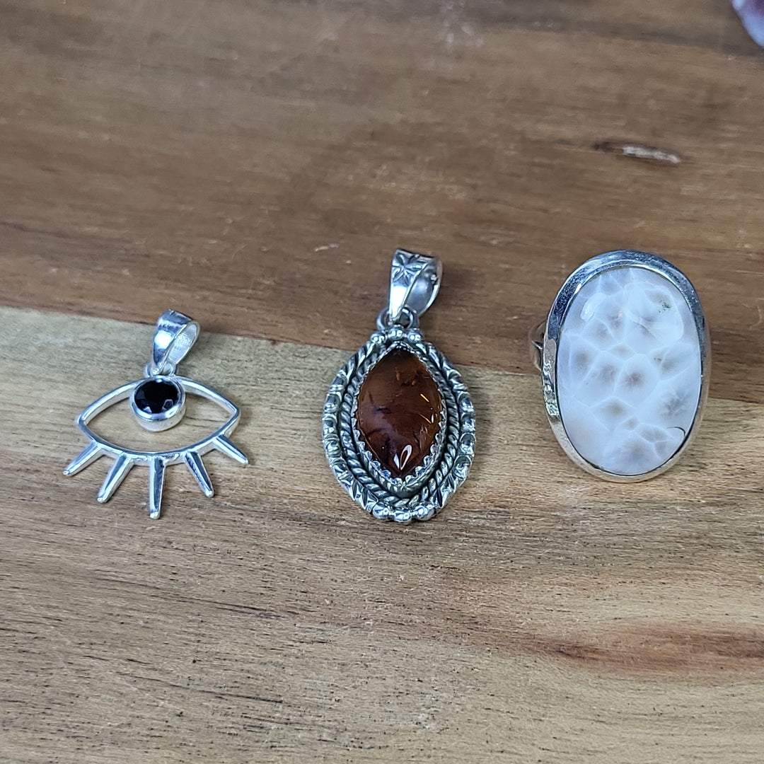 All sterling silver 925 items as described in live video, if you have any questions about stones please feel free to reach out we will always be happy to help.