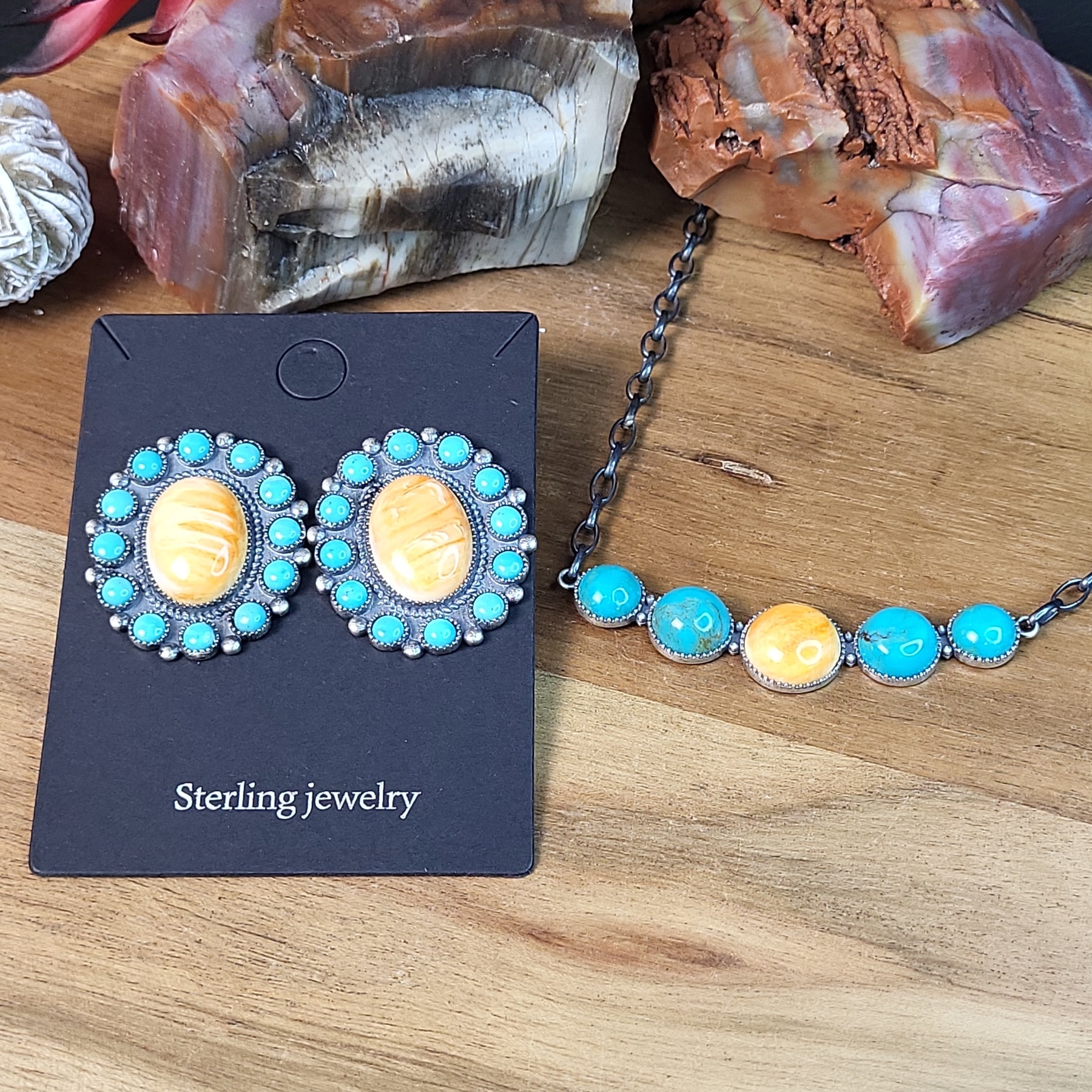 12 - Kingman Turquoise Spiny Oyster Necklace -69$