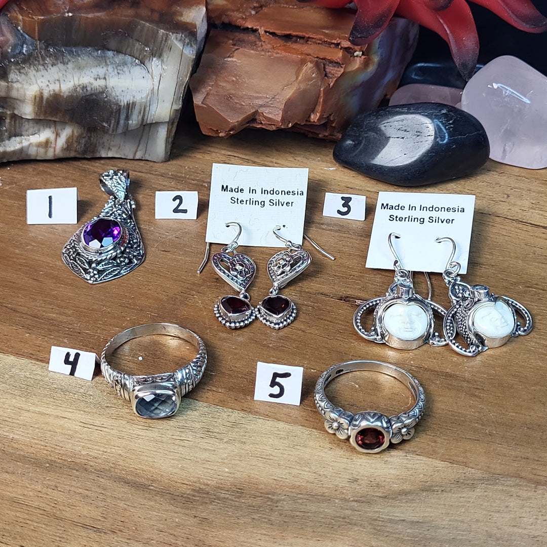 All sterling silver 925 items as described in live video, if you have any questions about stones please feel free to reach out we will always be happy to help.